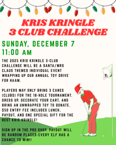 Sign up in the pro shop. Payout will be random places-every elf has a chance to win!!